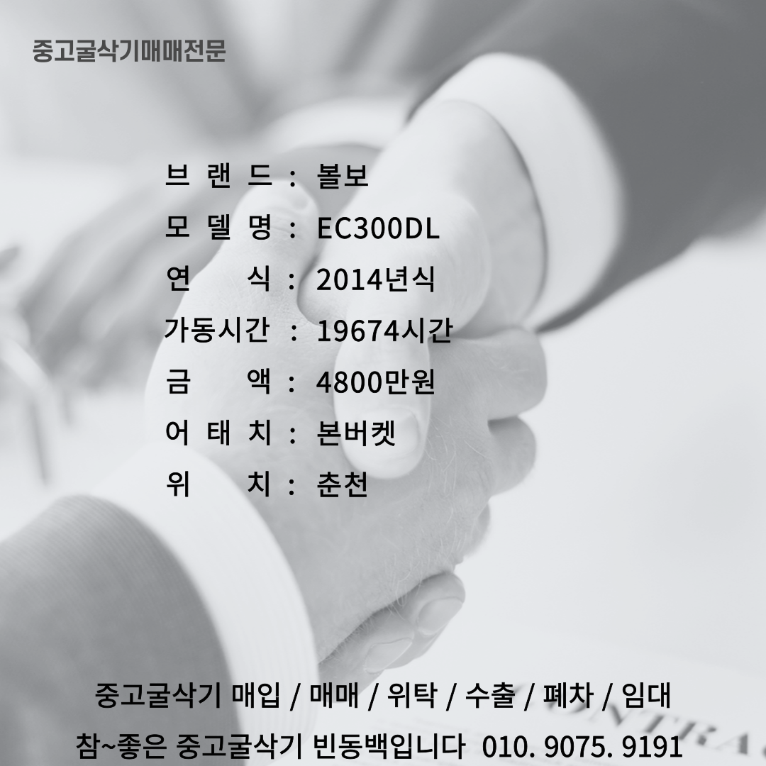 | 볼보 EC300E 2017년식 텐급 중고굴삭기 위탁판매 (1) | 2024.09.10 |